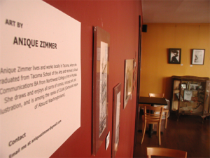 Stop by for a gander at the drawings and illustrations of CLAW member Anique Zimmer, on the walls of the Amocat Cafe on 625 St. Helens Ave in Tacoma. The show will be up all through July with a reception during Artwalk on Thursday the 21st, 7:30 PM – 9:00 PM. Everything on the wall is for sale and the reception will accompany CLAW’s July Open Swim drawing jam, so bring a sketchbook or camera!