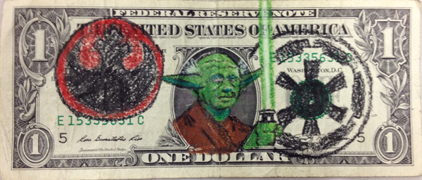 The Cartoonists’ League of Absurd Washingtonian’s Open Swim theme for Wednesday, February 25th 2015 was Hobo Dollars. The challenge was to invest in your art be improving the currency you brought to the event. There were several winners. So many I forgot to keep track of their order. So, in no particular order, here are the submissions from the event.